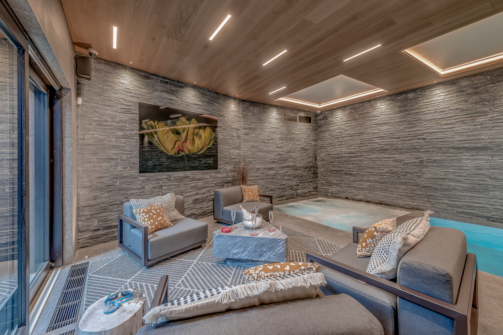 Set directly on the Belvédère piste, Chalet Bacchus offers true ski-in, ski-out access in one of Courchevel Moriond’s most sought-after positions. Named after the Roman god of wine, the chalet pairs refined alpine living with an exceptional wellness offering, including a 10-metre heated pool, sunken hot tub, sauna, hammam and private cinema.